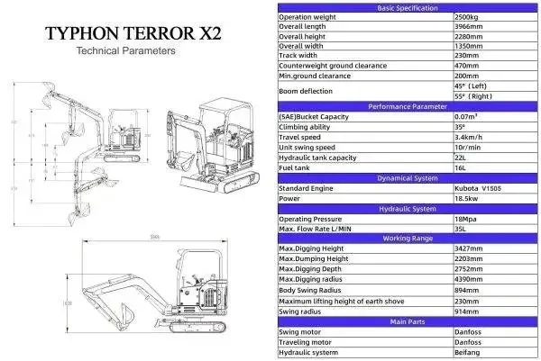 10 reviews for 2025 TYPHON TERROR X2 STORM Mini Excavator – 2.5 Ton | Kubota V1505 Diesel Engine | EPA Certified
