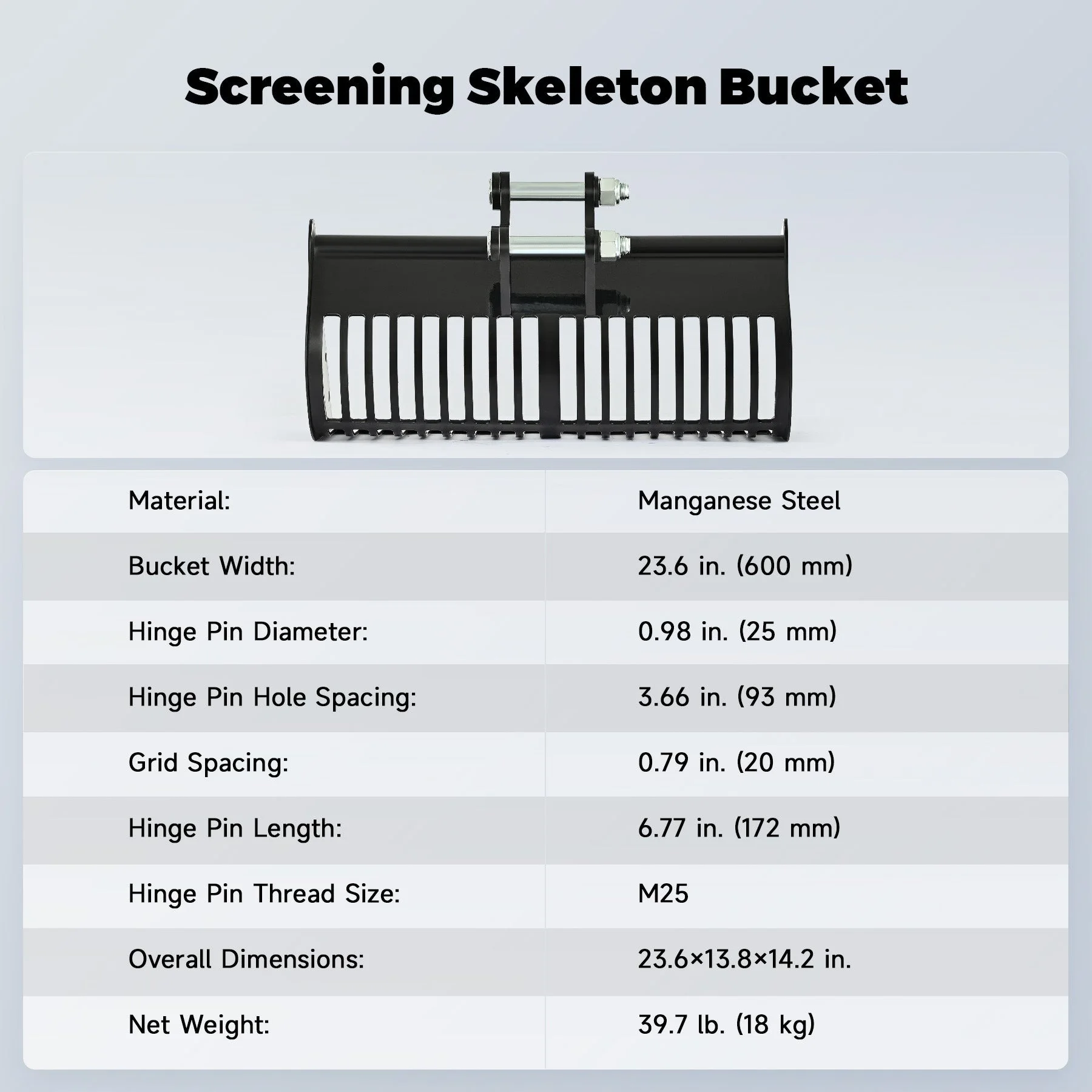 • Efficient Material Sorting – The skeleton design of this bucket ensures that only the required material passes through, leaving behind larger debris or waste. Perfect for sifting gravel, sand, and other loose materials.