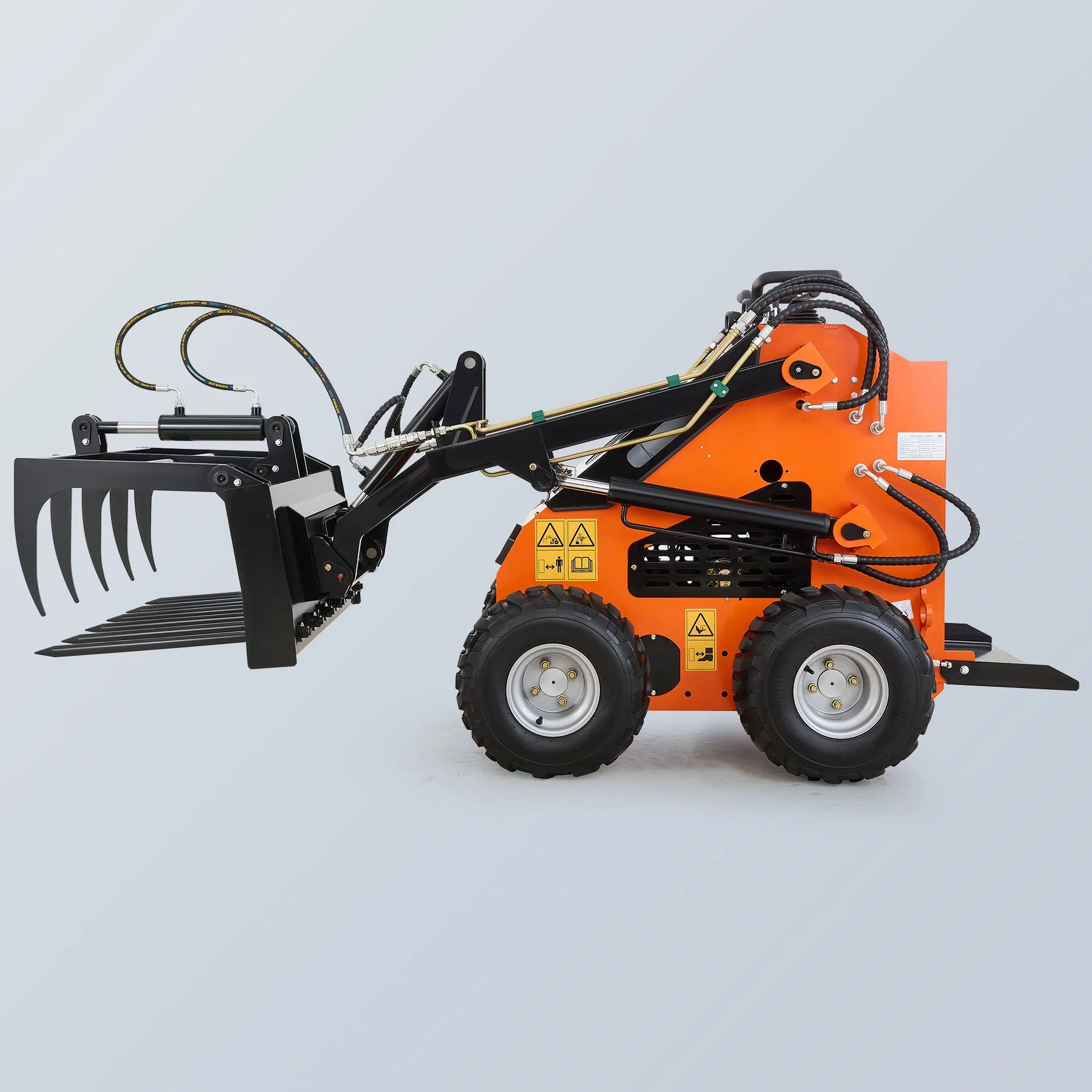 • Hydraulic Power – Powered by the mini skid steer’s hydraulic system, ensuring high efficiency and robust gripping action for a variety of applications.