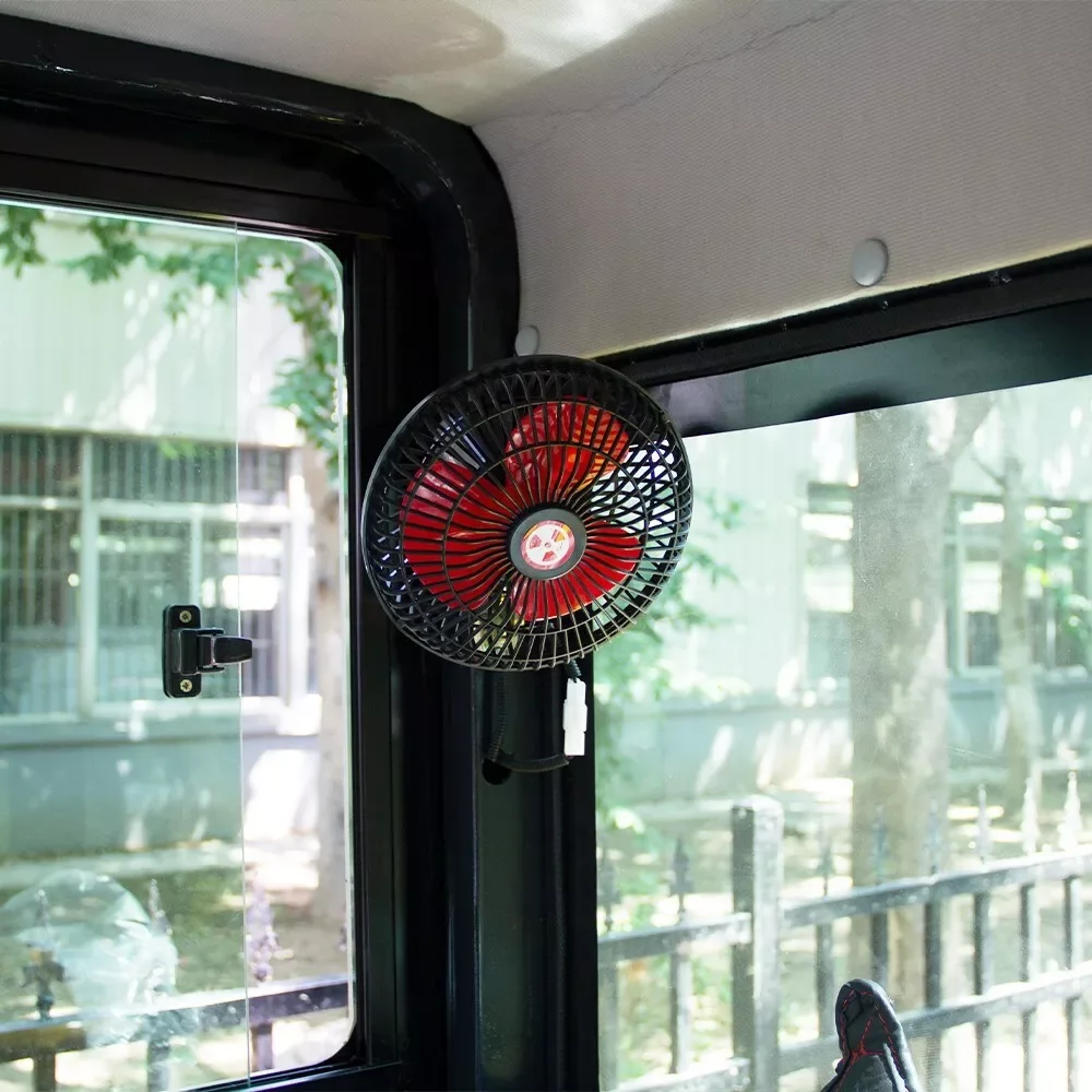 • Cabin: Enclosed cab with wiper, fan, digital gauges, cup holder, and armrests for operator comfort